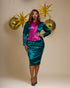 Cut from luxurious Mikado fabric, the dress holds its shape beautifully while delivering a subtle, sophisticated sheen. The silhouette is refined with a sleek straight skirt, elongating the frame and creating a poised, statuesque finish. A bold criss-cross lapel, framing the neckline with architectural precision and modern allure.